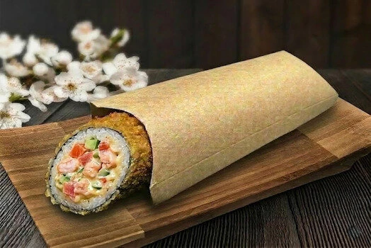 Шаверма в темпуре с жареным лососем